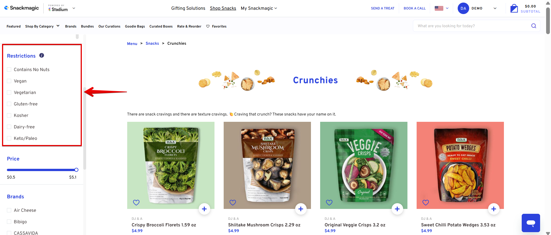 - When you visit the Snackmagic menu, look at the left-hand side of the site. You’ll see a Preferences section where you can filter snacks based on dietary restrictions.
