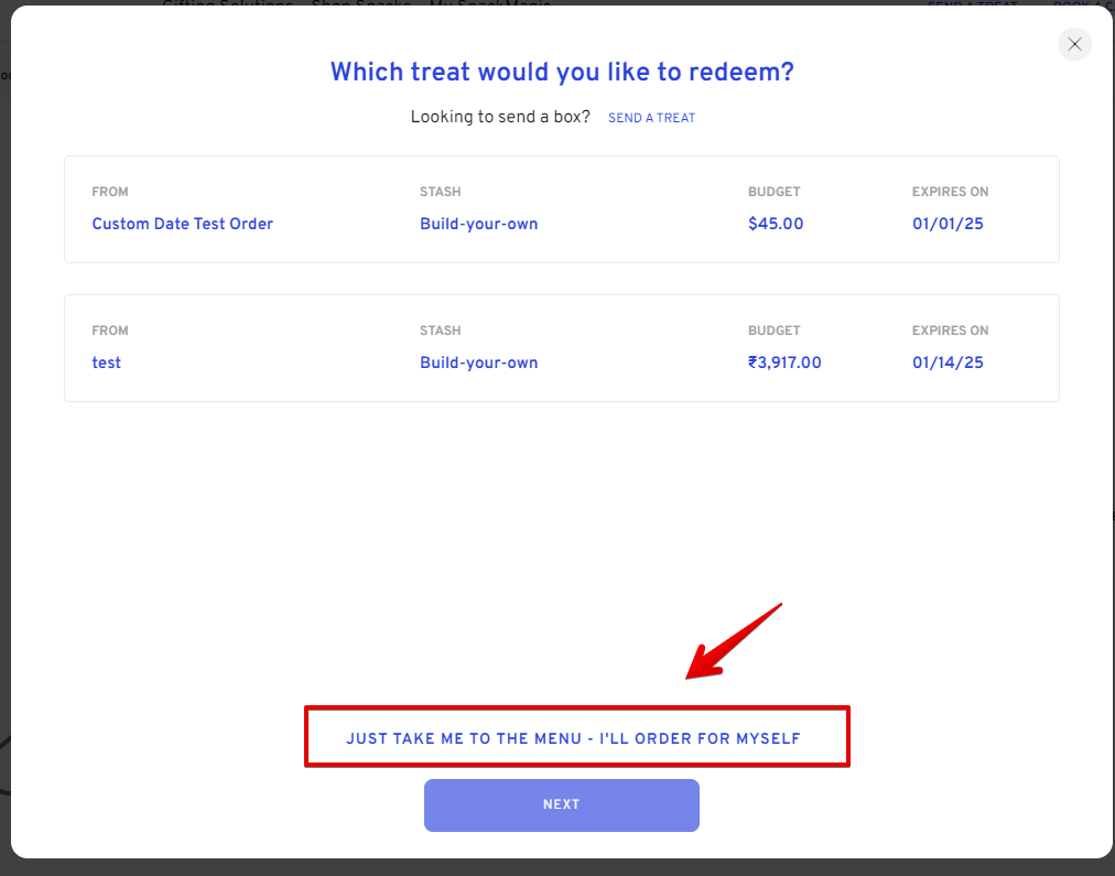 Select JUST TAKE ME TO THE MENU – I’LL ORDER FOR MYSELF.