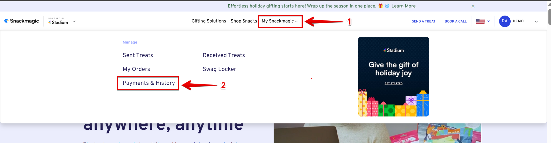 Click the dropdown menu next to “My Snackmagic.”